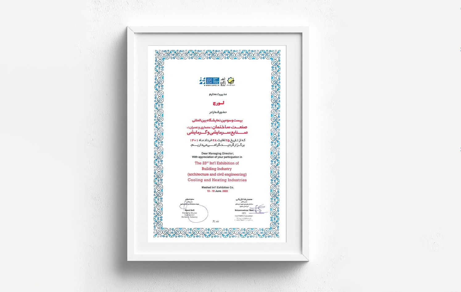خانه » گواهینامه ها و افتخارات