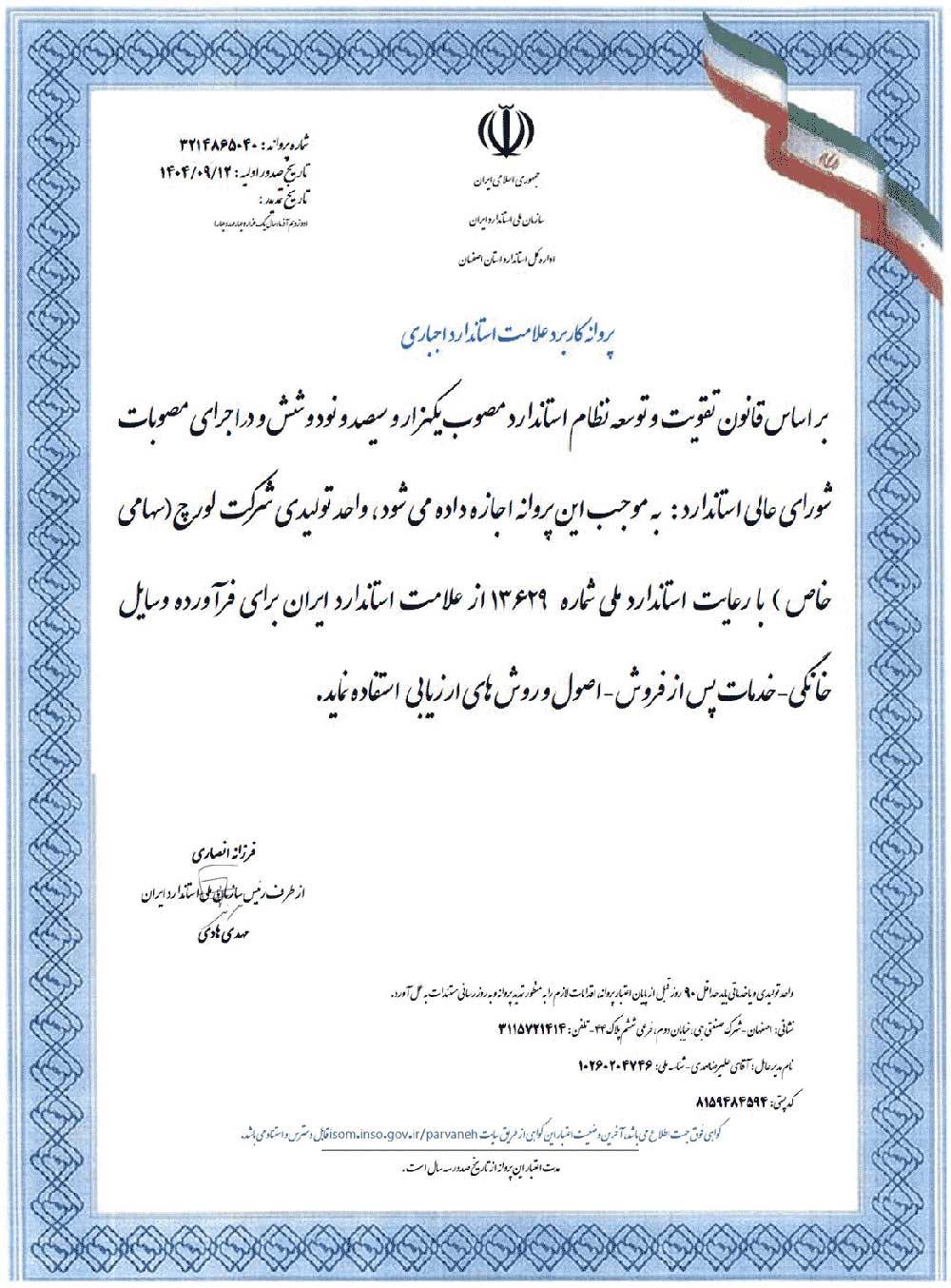 گواهینامه رعایت حقوف مصرف کنندگان